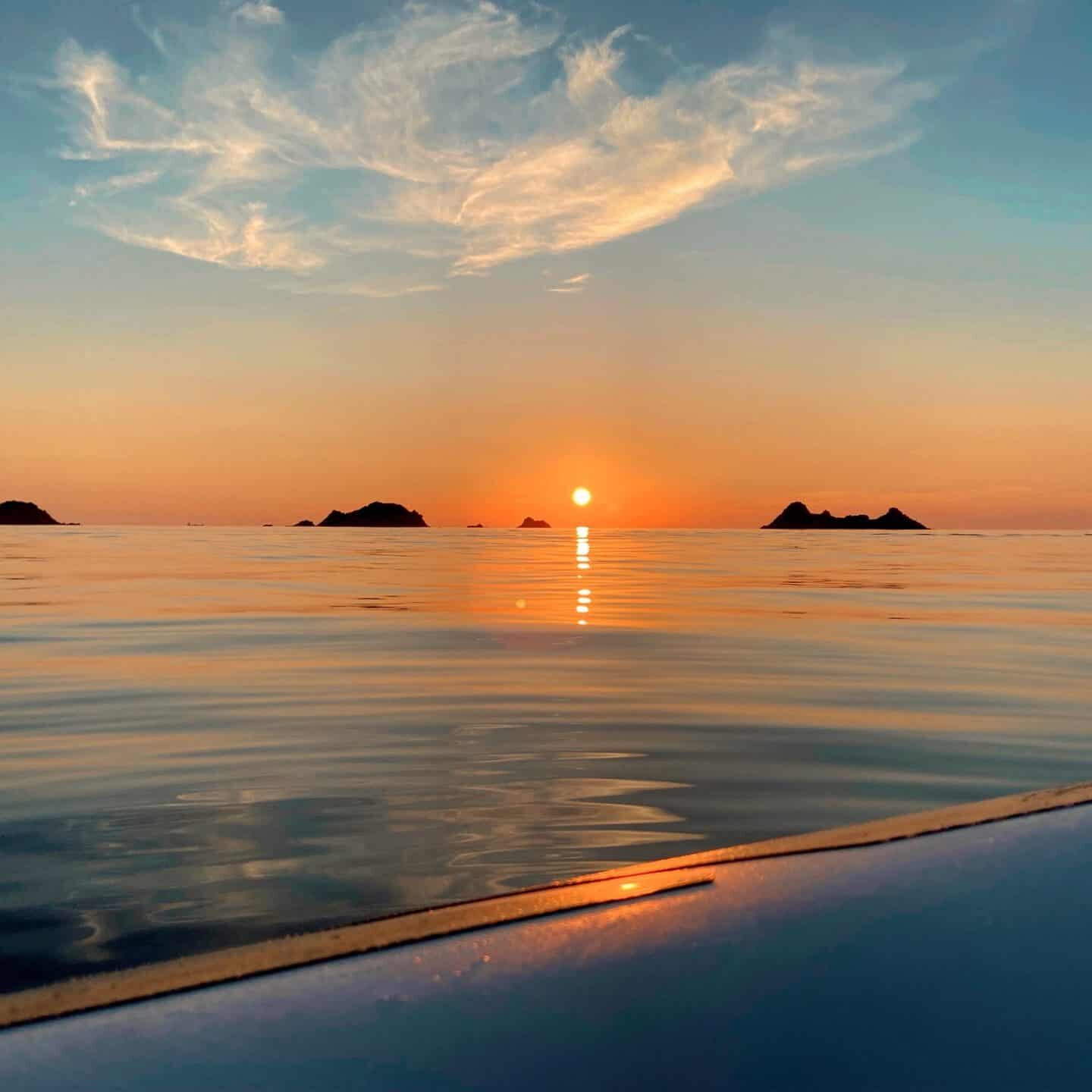 1 ère étape : Cap au large de Saint Jean cap Ferrat, arrêt observation du lever de soleil et baignade avec un petit déjeuner.
