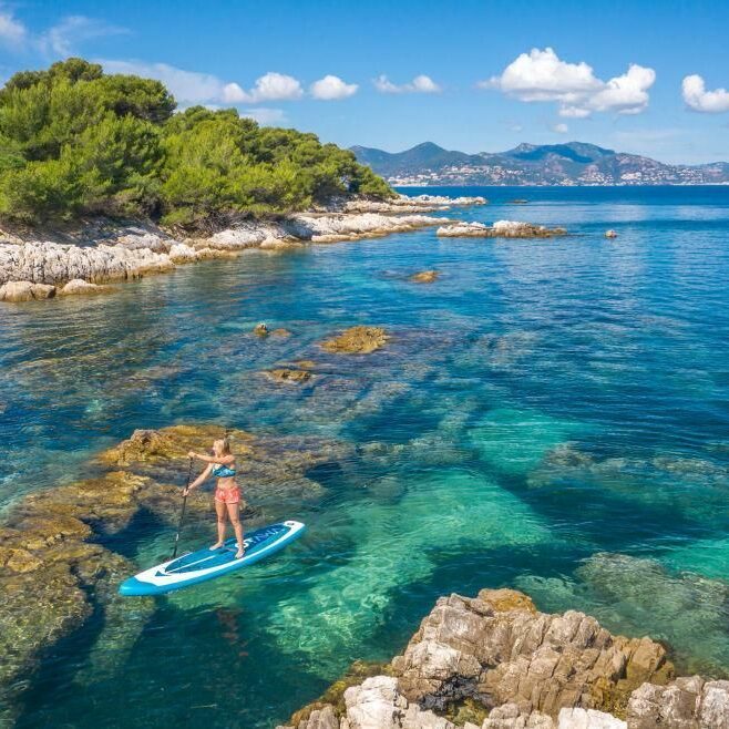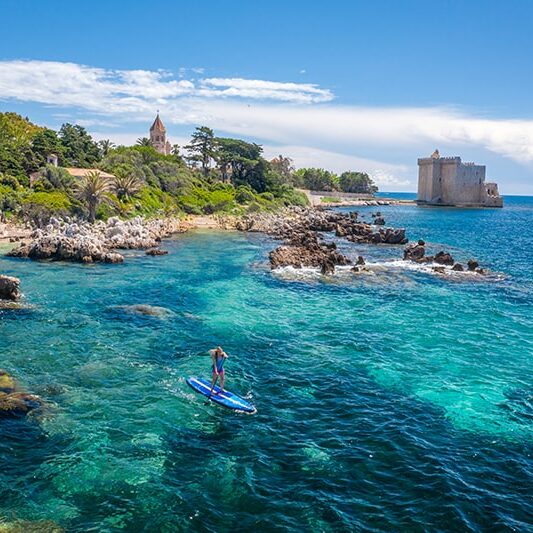 Direction la baie de Cannes pour visiter les îles Lérins ! En levant les yeux, vous les apercevrez au large, verdoyantes et encerclées d’eau turquoise.